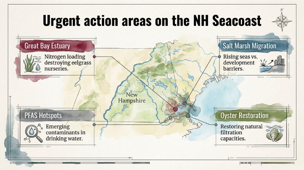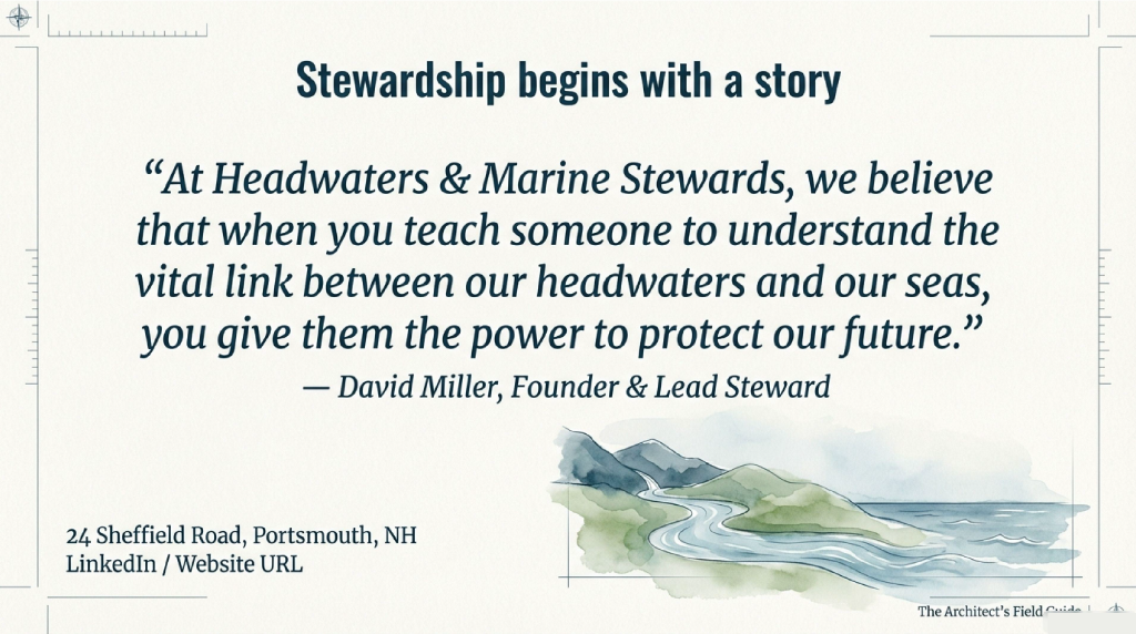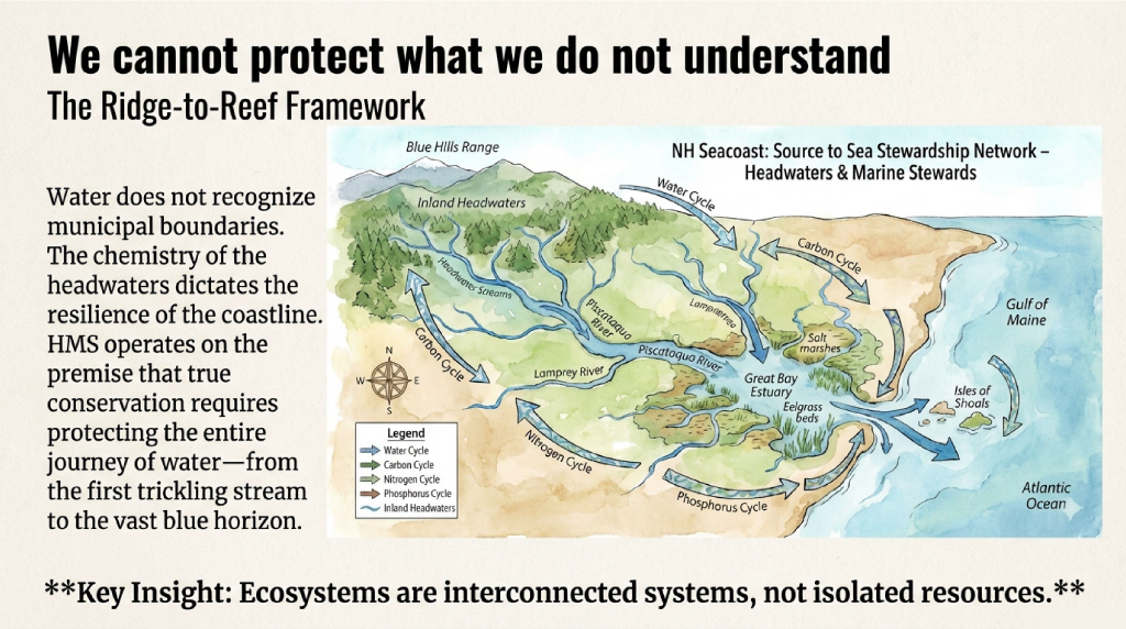 Living and working in the Portsmouth and Seacoast region, David recognized that our local economy, our history, and our future are all tied to the water. From the trickling headwaters of our inland streams to the bustling marine life of the Atlantic, these systems are the lifeblood of our community.